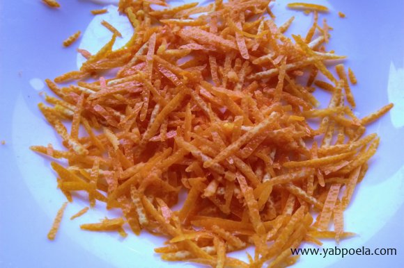 Апельсин вимити та зняти цедру. Нам потрібна лише помаранчева частина, біла гірчить.