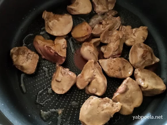 Обсмажити печінку на невеликій кількості оливкової олії. Солимо і перчимо наприкінці.