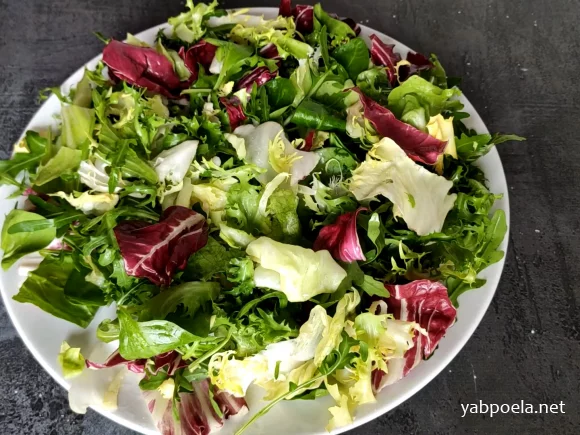 На плоску тарілку викладаємо мікс салату.