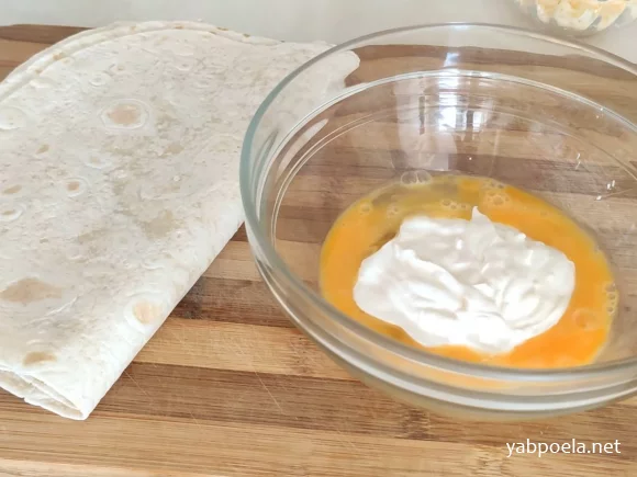 Яйце злегка збиваємо вилкою. Додаємо до нього сметану, перемішуємо.