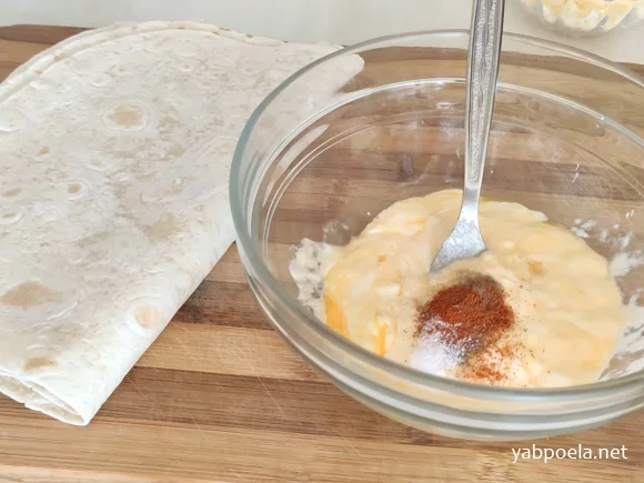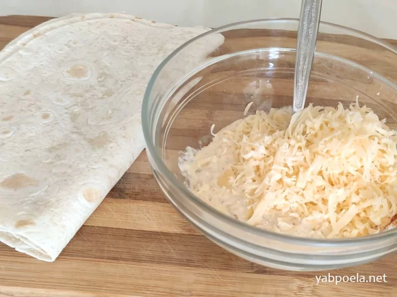 Розгортаємо лист лаваша. Змащуємо сирною сумішшю, що вийшла.