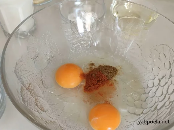 Для початку в глибокій мисці збиваємо вінчиком яйця зі спеціями.