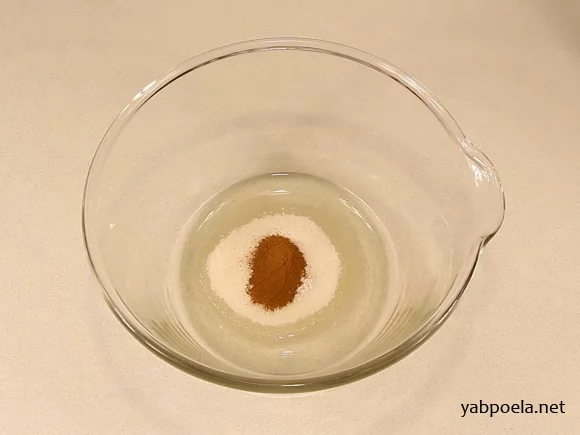 У глибоку миску наливаємо рослинну олію. Додаємо цукор, ванілін і корицю.