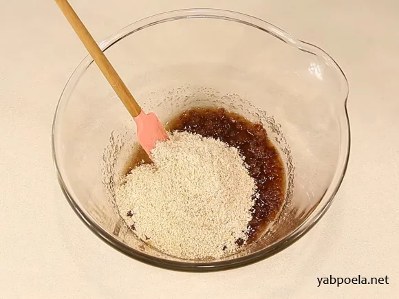 Потім всипаємо подрібнені вівсяні пластівці. Перемішуємо.