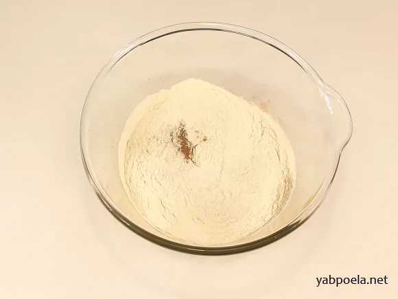 Воду з сіллю вливаємо в миску з тістом. Додаємо погашену соду. Перемішуємо.