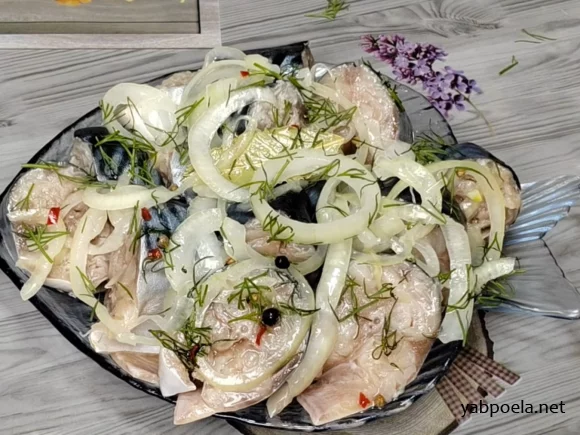 Для такого способу соління краще брати рибу більш велику та жирну — тоді скумбрія вийде особливо ніжною і танучою в роті.