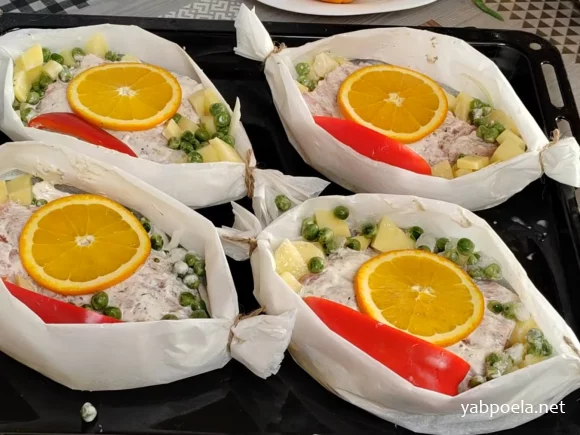 Цей рецепт перетворює звичайну горбушу на святкову, неймовірно соковиту та ароматну страву. Секрет криється у вершково-цитрусовому маринаді (сметана, майонез і апельсиновий сік), який надає рибі ніжної текстури та вишуканого смаку. Порційні човники з пергаменту з овочевою “подушкою” роблять подачу ефектною та зручною. Ідеальний варіант для сімейної вечері або святкового столу.