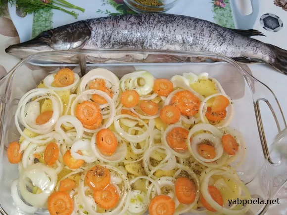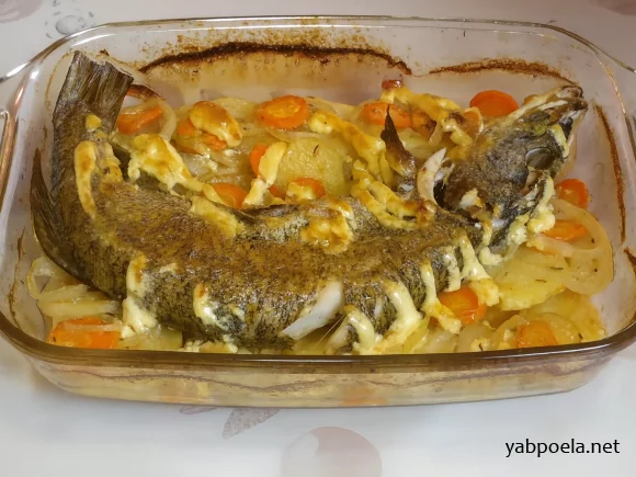 Щука, запечена цілком із картоплею та овочами (Пісний рецепт)