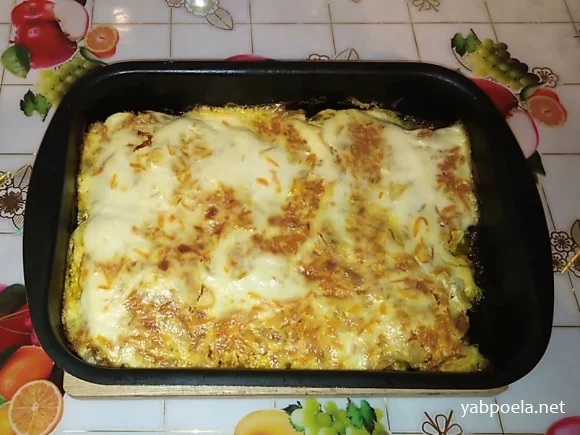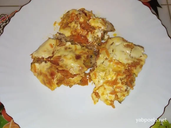 - Шуба: Рівномірно розподіліть готову овочеву пасеровку (шубу) поверх кожного шматочка риби.