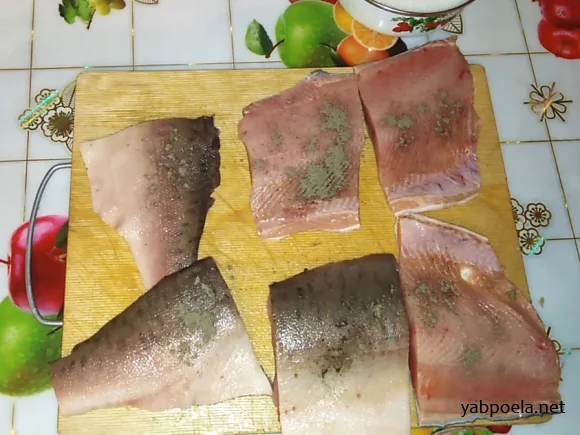 - Приправляння: Посоліть рибу за смаком і додайте третину чайної ложки чорного меленого перцю.