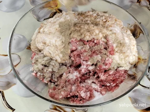 - Пропустіть через м'ясорубку м'ясо та цибулю.