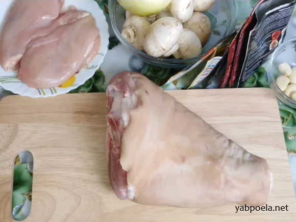 Як приготувати "Рулет зі свинячої рульки з куркою та грибами"