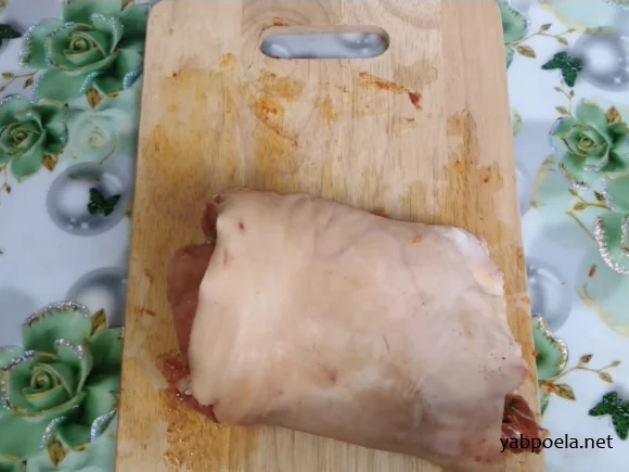 Акуратно відокремте кістку ножем, намагаючись зберегти шкіру цілою. Видаліть усі тверді сухожилля та жорсткі плівки.