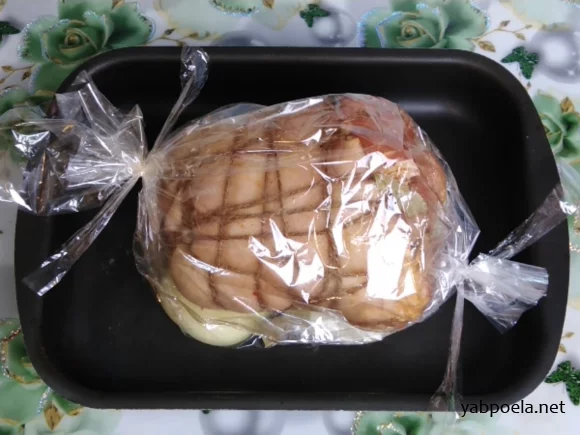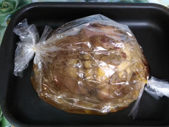 Якщо хочете, щоб шкірка зарум'янилася, розріжте пакет, збільште температуру до 220°C і випікайте ще 30 хвилин.