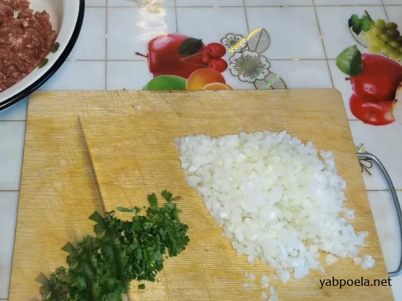 Наріжте цибулину (80–100 г) якомога дрібніше (це важливо для консистенції).