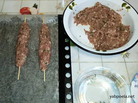 Нанизайте фарш на шпажку (25 см). Рівномірно розподіліть м'ясо по шпажці, злегка розтягуючи.