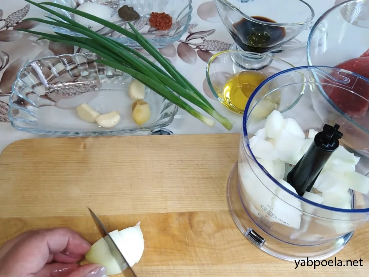 Порада: Можна просто дрібно нарізати, але цибулеве пюре краще розм'якшує волокна м'яса.
