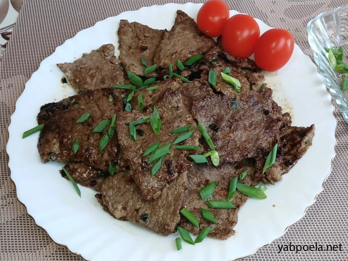 Це знаменита страва корейського барбекю (Bulgogi), яку легко адаптувати для домашньої кухні. Найтонші скибочки яловичини маринуються в ароматній суміші соєвого соусу, цибулі та спецій, а потім швидко обсмажуються. М'ясо виходить настільки м'яким, що буквально тане в роті!
