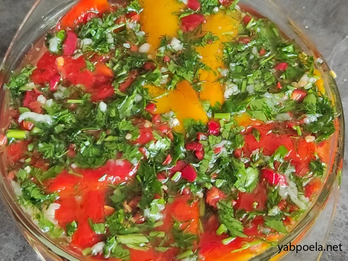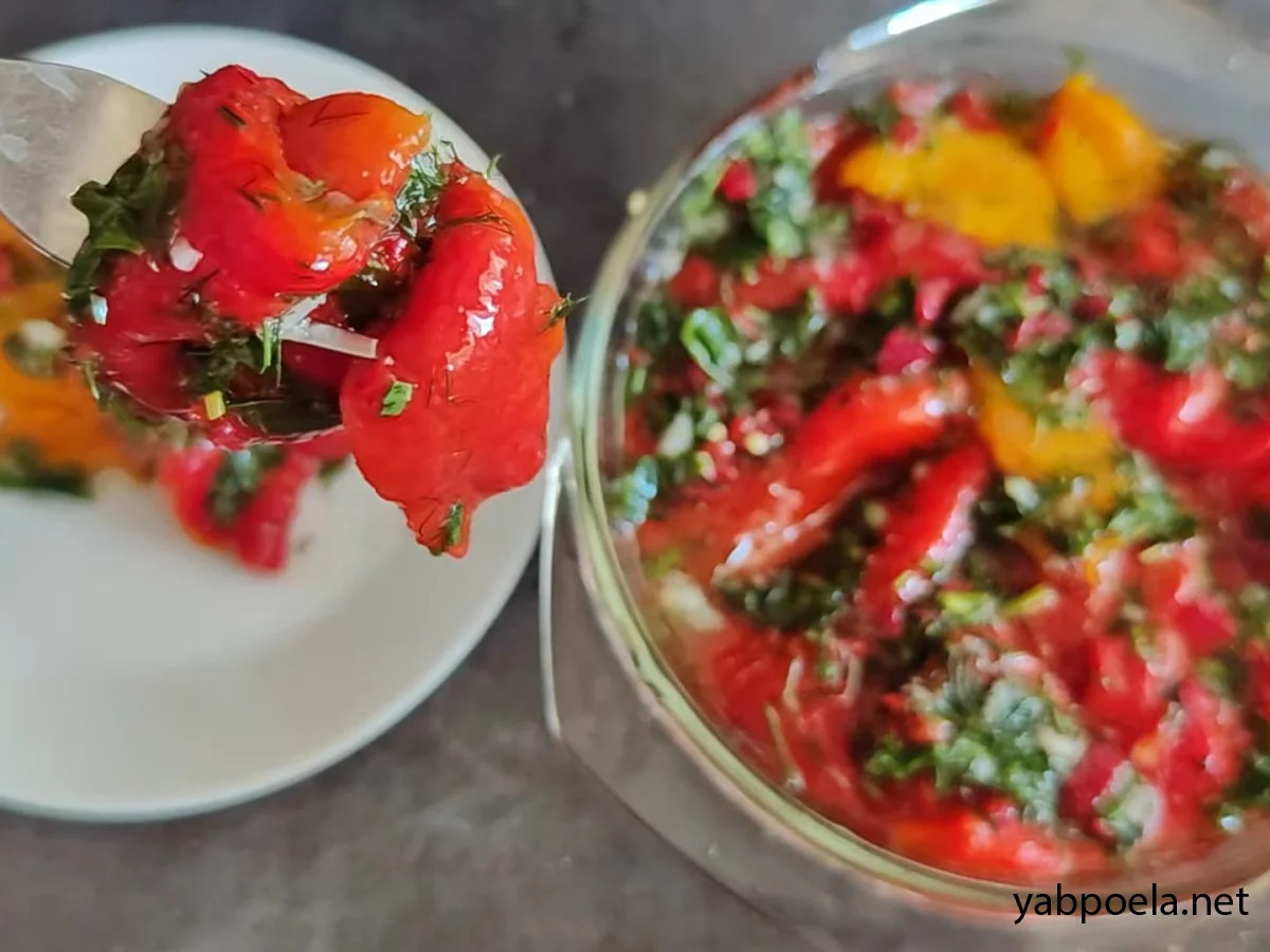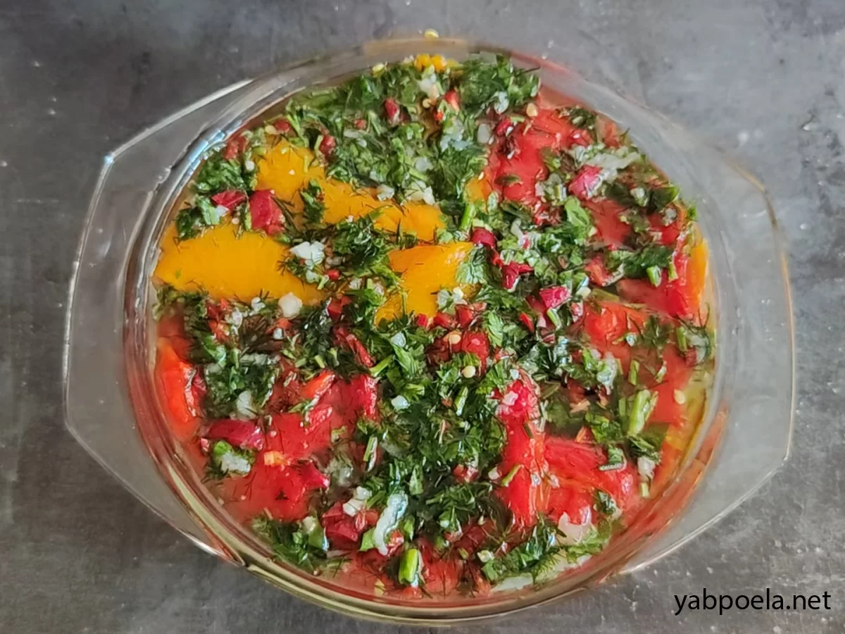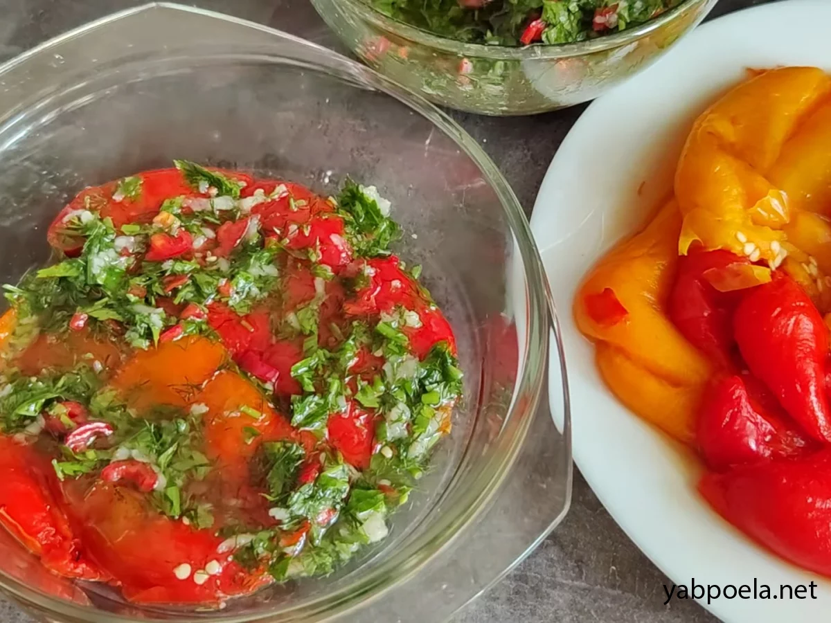 Кріп та петрушка додають свіжість, а маринад робить перці соковитими та дуже ароматними.