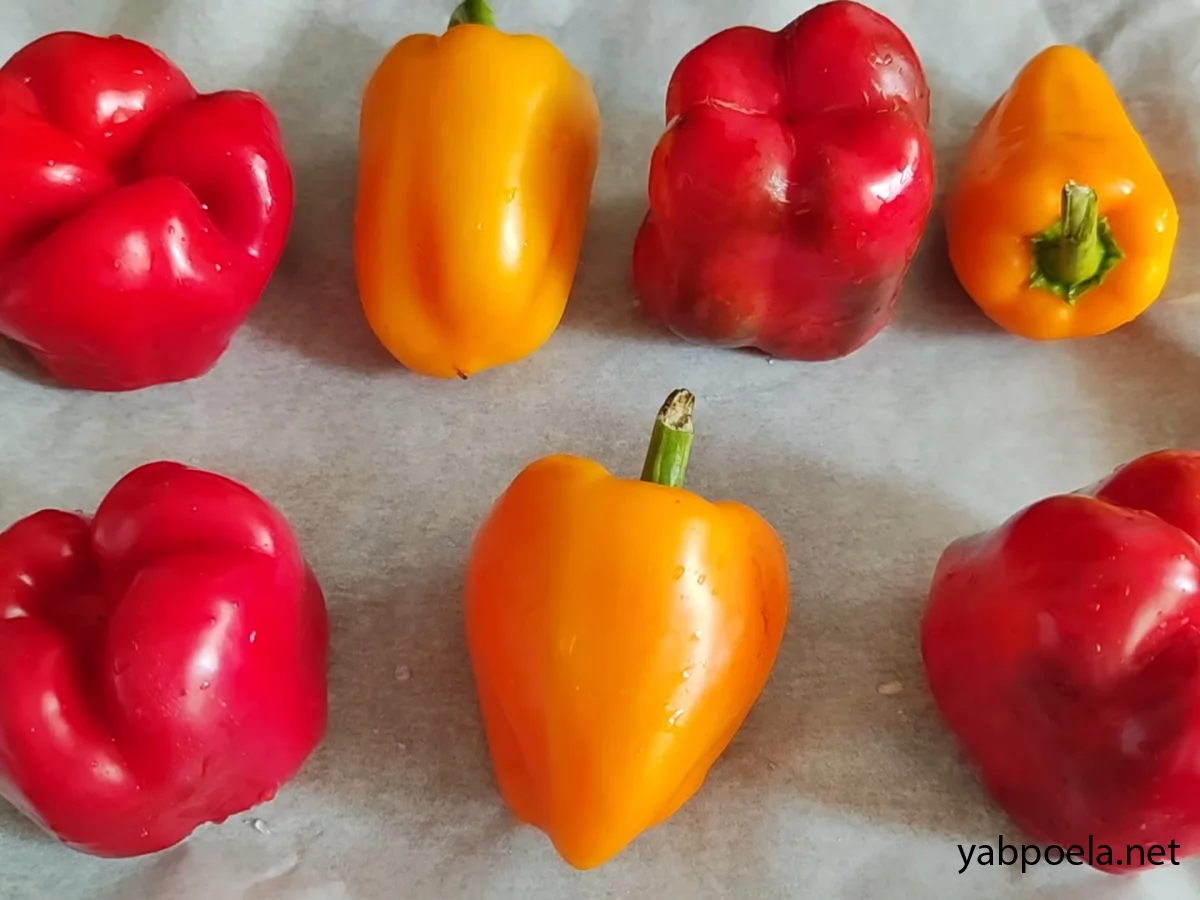 Солодкий перець викладаємо на деко з пергаментом.