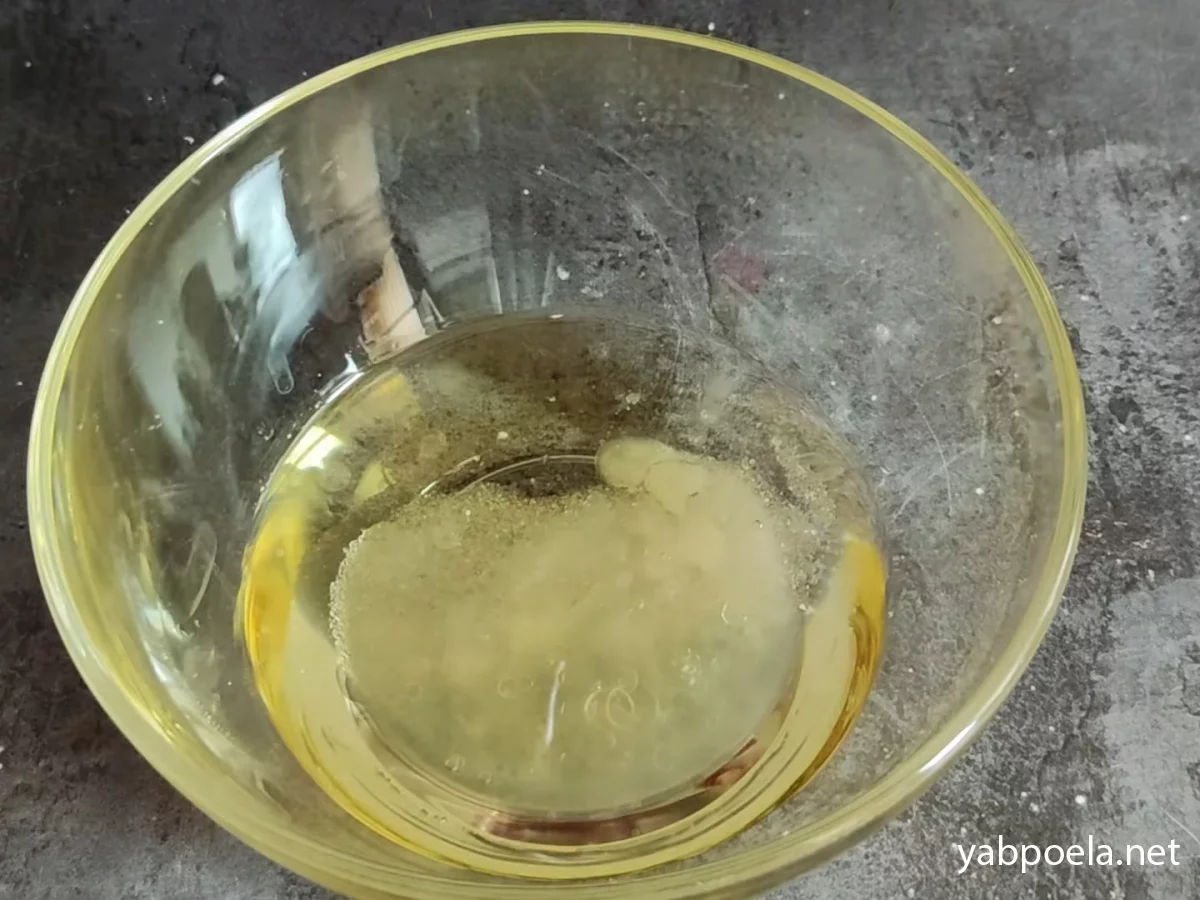У глибоку миску вливаємо олію, сік лимона, додамо сіль і цукор.