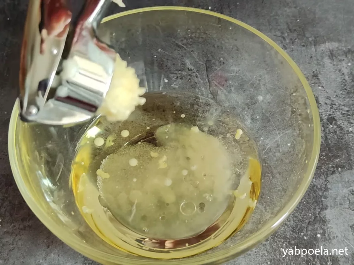 Видавлюємо часник. Перемішуємо, щоб сіль та цукор розчинилися.