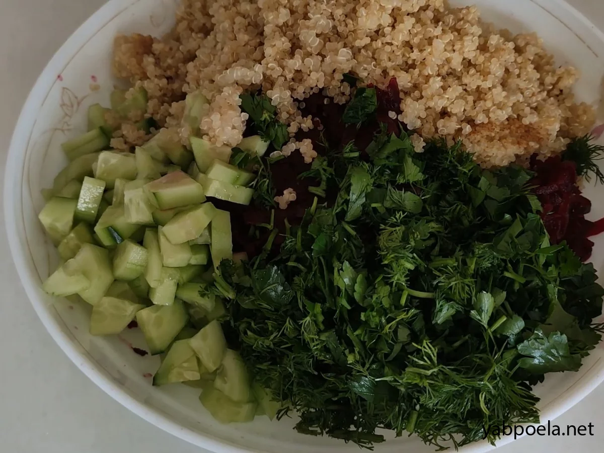 Також у салатник перекладаємо відварену кіноа.