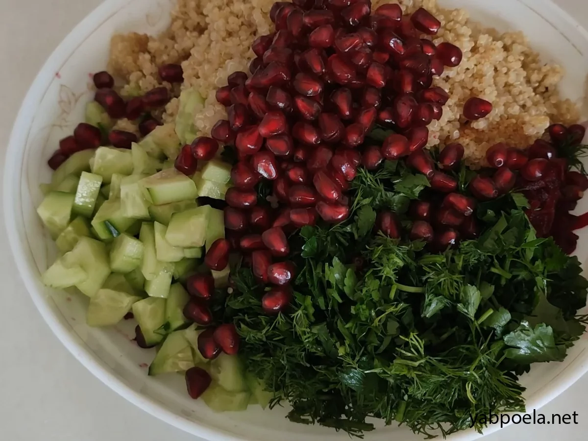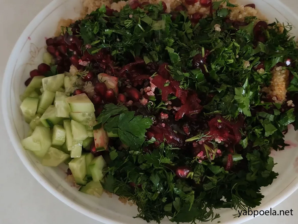 Салат з буряка з кіноа та гранатом готовий.