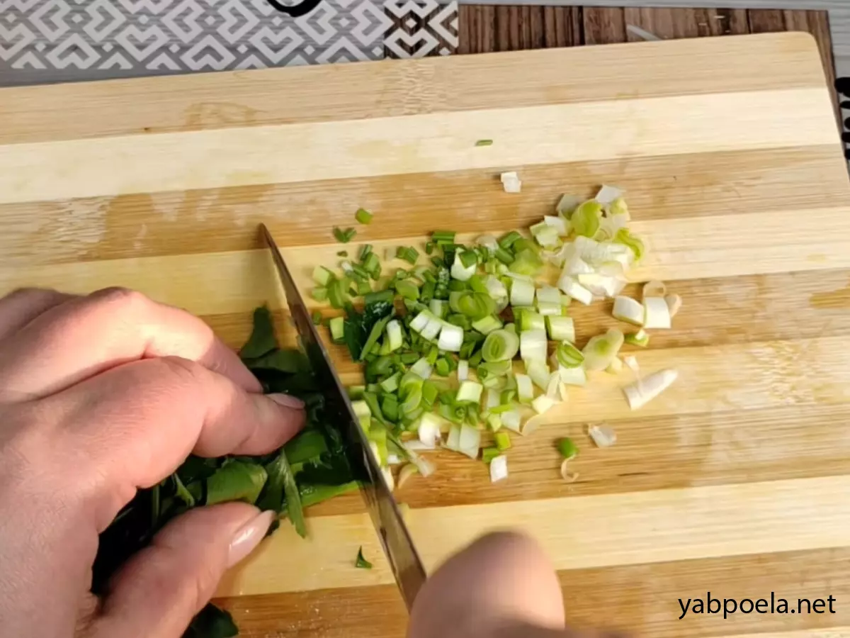 Дрібно наріжте зелень. Підійде по 3 гілочки зеленої цибулі та петрушки (або будь-яка інша зелень на ваш смак).