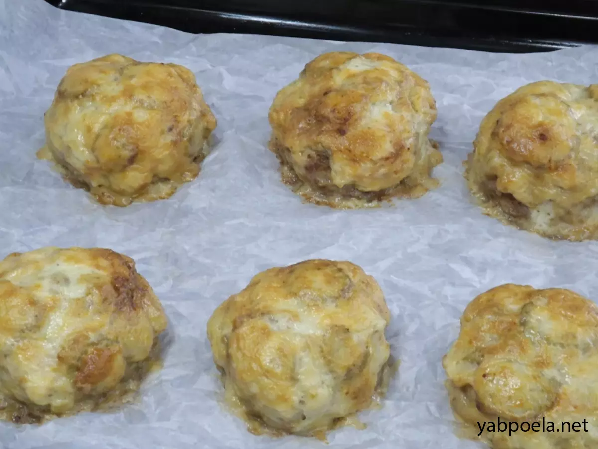 М'ясні «стожки» з картоплею та солоним огірком під сирною шапочкою