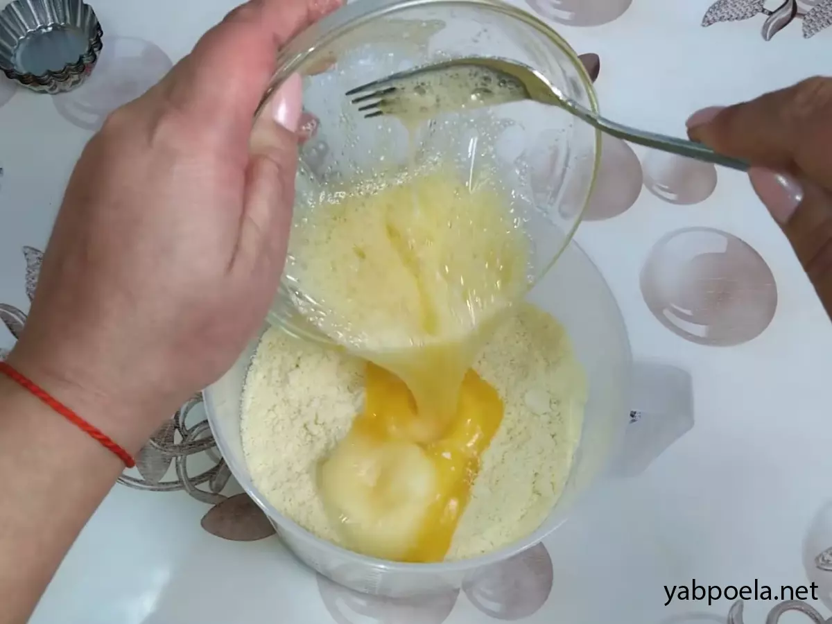 Влийте яєчну масу в масляно-борошняну крихту. Швидко зберіть тісто в єдину грудку.