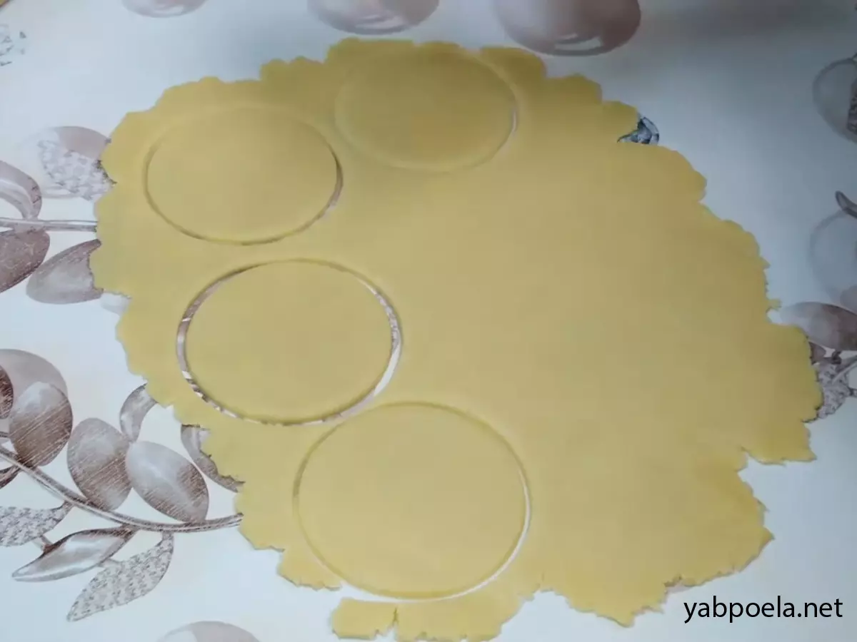 Охолоджене тісто розкачайте у пласт товщиною 3–4 мм. Для зручності використовуйте пергамент або плівку. Виріжте кола діаметром трохи більшим, ніж ваші формочки.