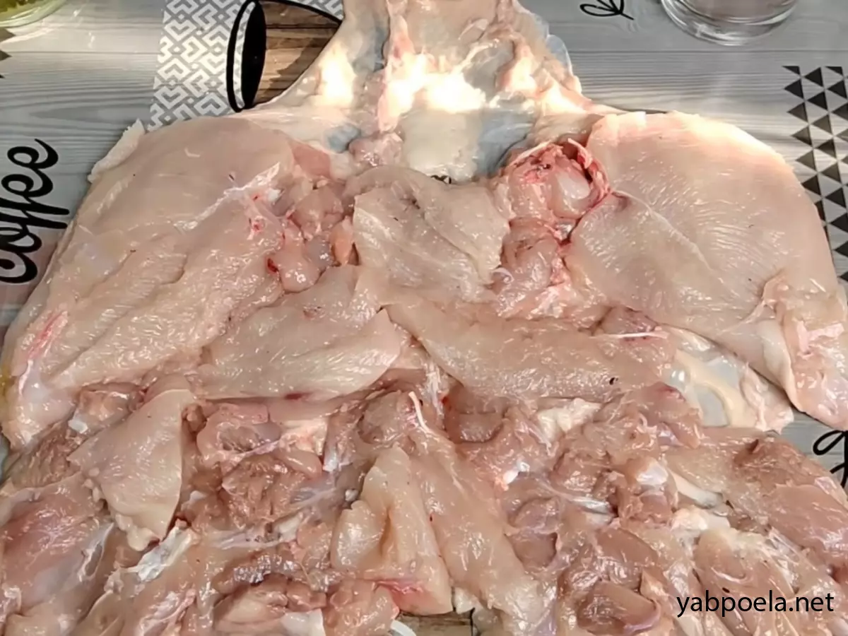 Коли скелет видалено, розподіліть м'ясо рівномірно. Зріжте потовщення з грудки (мале філе) і перекладіть ці шматочки на «порожні» місця, де залишилася тільки шкіра (зазвичай в області спинки), щоб шар м'яса скрізь був однаковим.