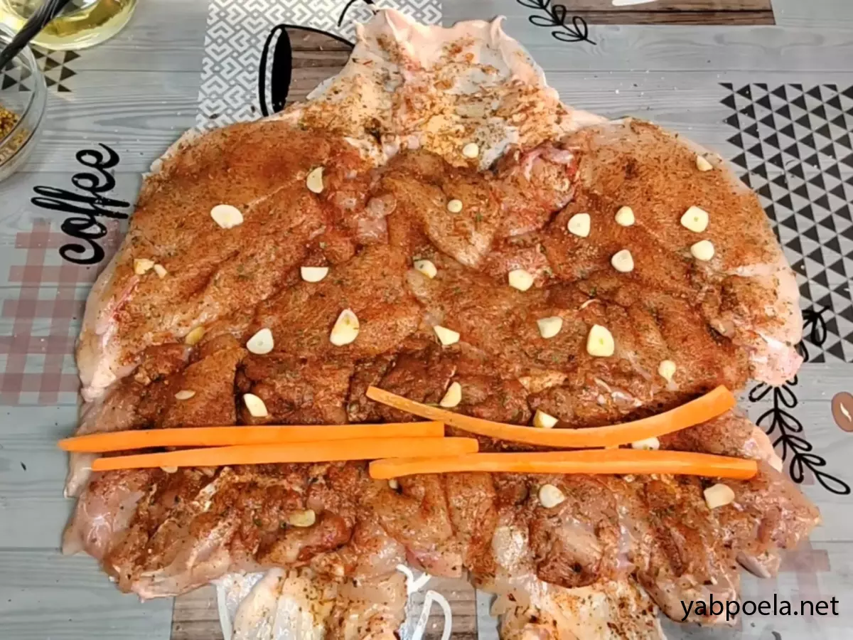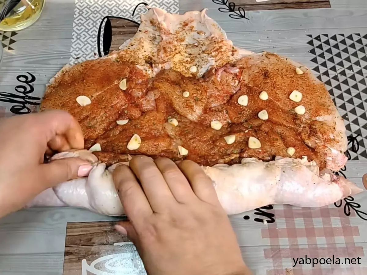 Як приготувати "Курячий рулет із цілої курки з часником та морквою"