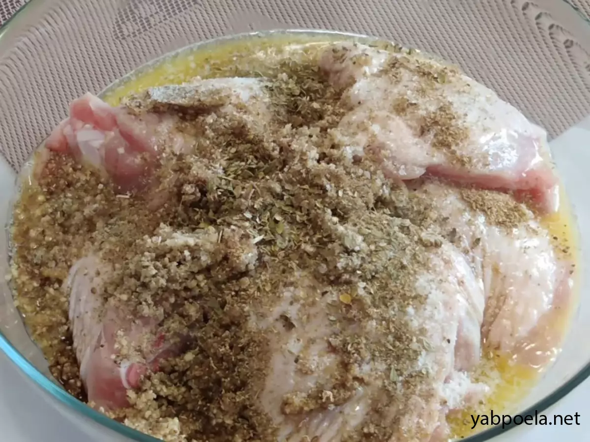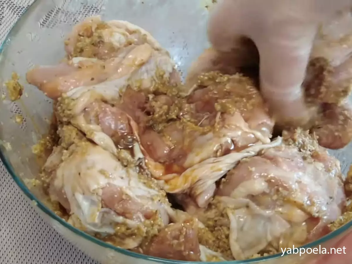 Важливий етап: Залиште курку маринуватися мінімум на 1 годину (можна підготувати заздалегідь і залишити в холодильнику на кілька годин). Це зробить м'ясо соковитим та ароматним.
