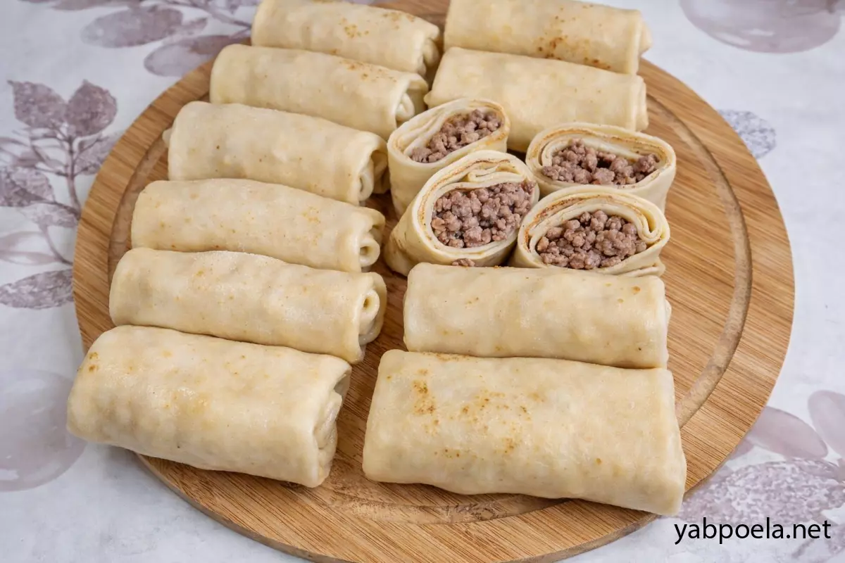 Тісто на суміші молока та води виходить легким і не рветься при згортанні. А секрет соковитості фаршу криється в додаванні невеликої кількості води при смаженні — начинка не буде сухою, навіть якщо використовувати нежирне м'ясо.