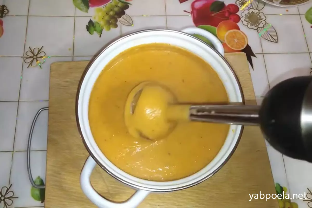 Перебиваємо суп занурювальним блендером до стану однорідного крему.