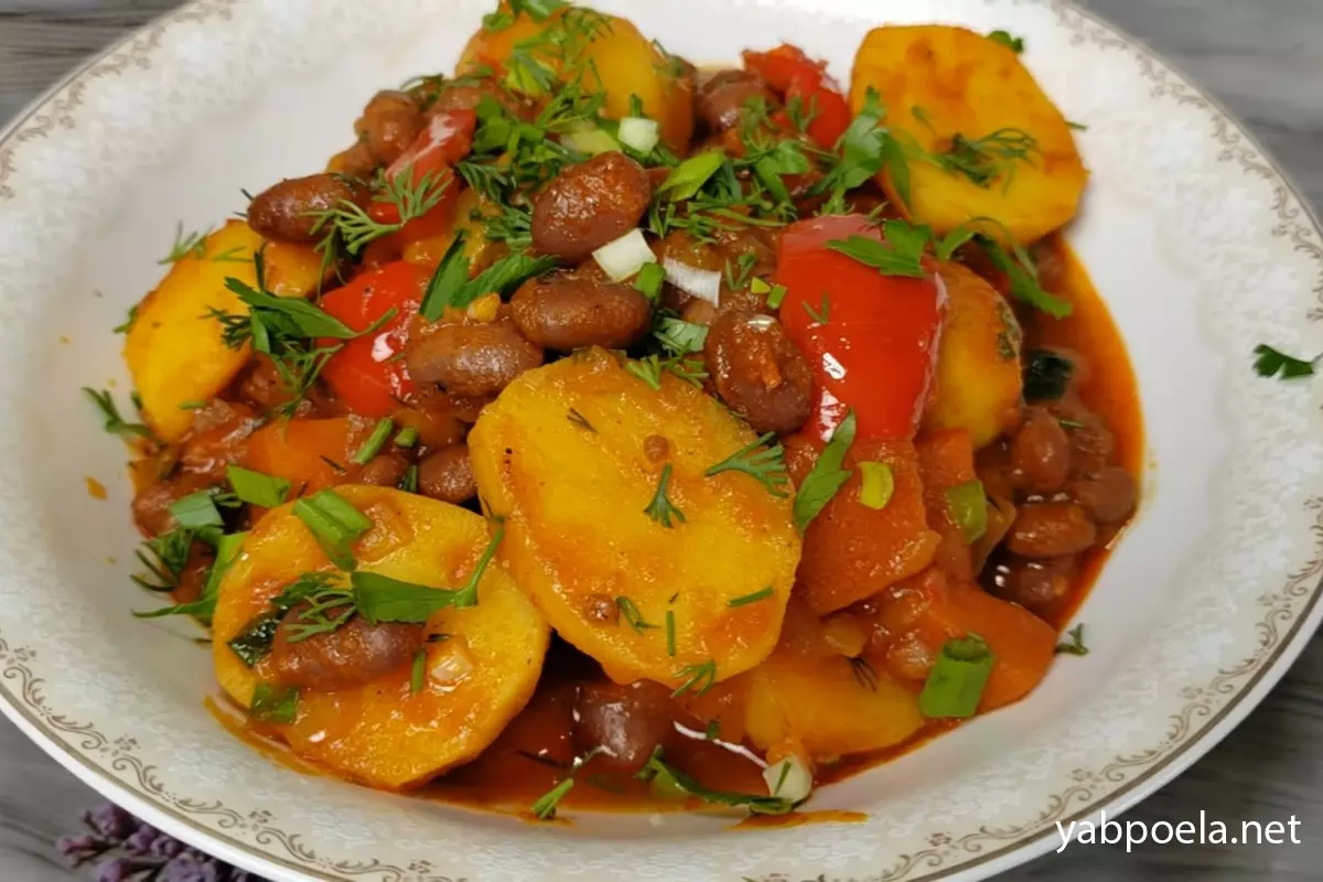Тушкована картопля з квасолею в томатному соусі (Пісний рецепт)