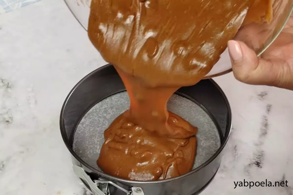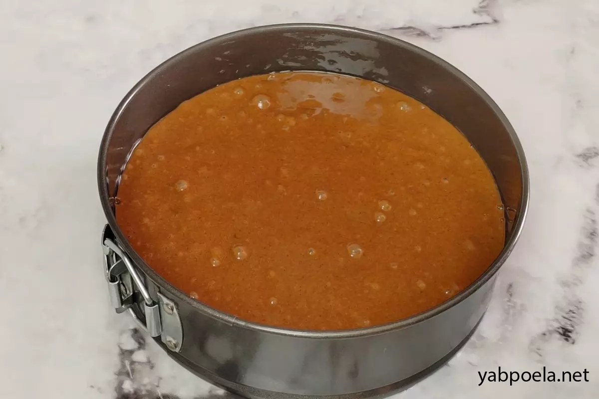 Форму для випікання (18–20 см) застеліть пергаментом і злегка змастіть олією. Вилийте тісто у форму.