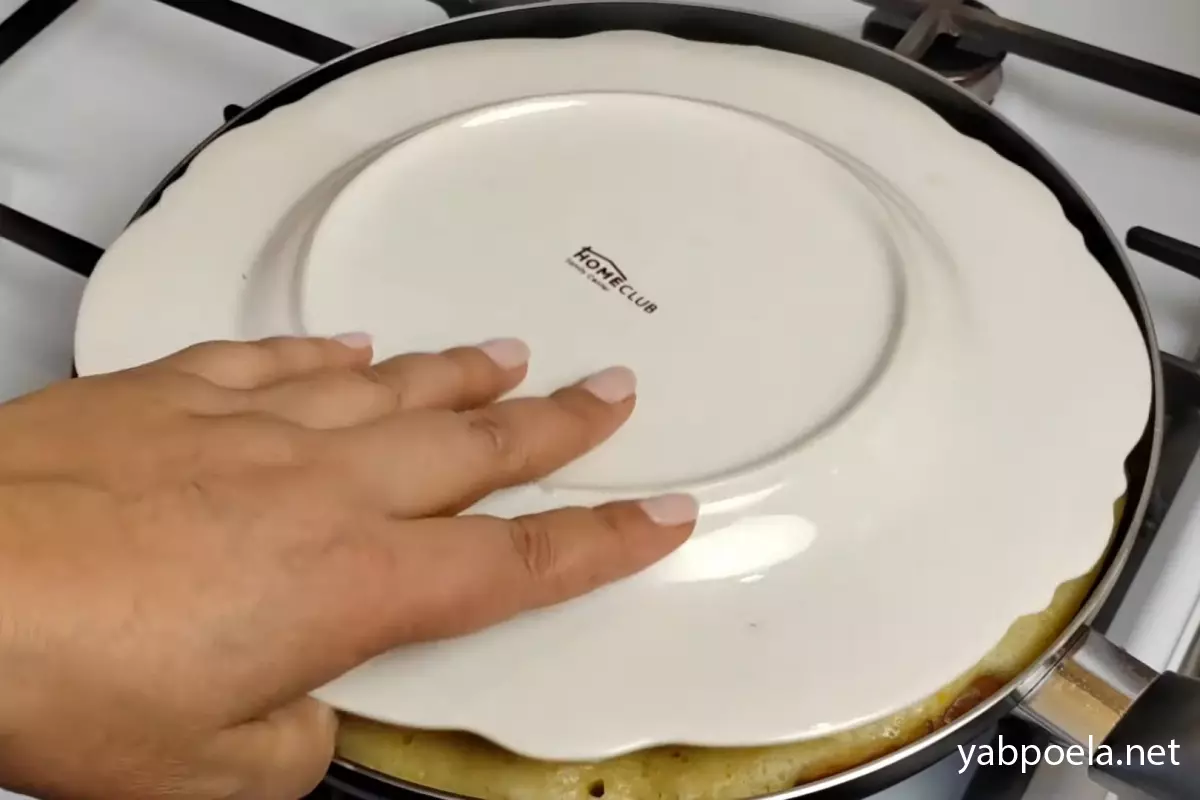 - Трюк із тарілкою: Змащування тарілки олією перед перевертанням гарантує, що ніжний пиріг не прилипне до неї та легко зісковзне назад у сковороду.