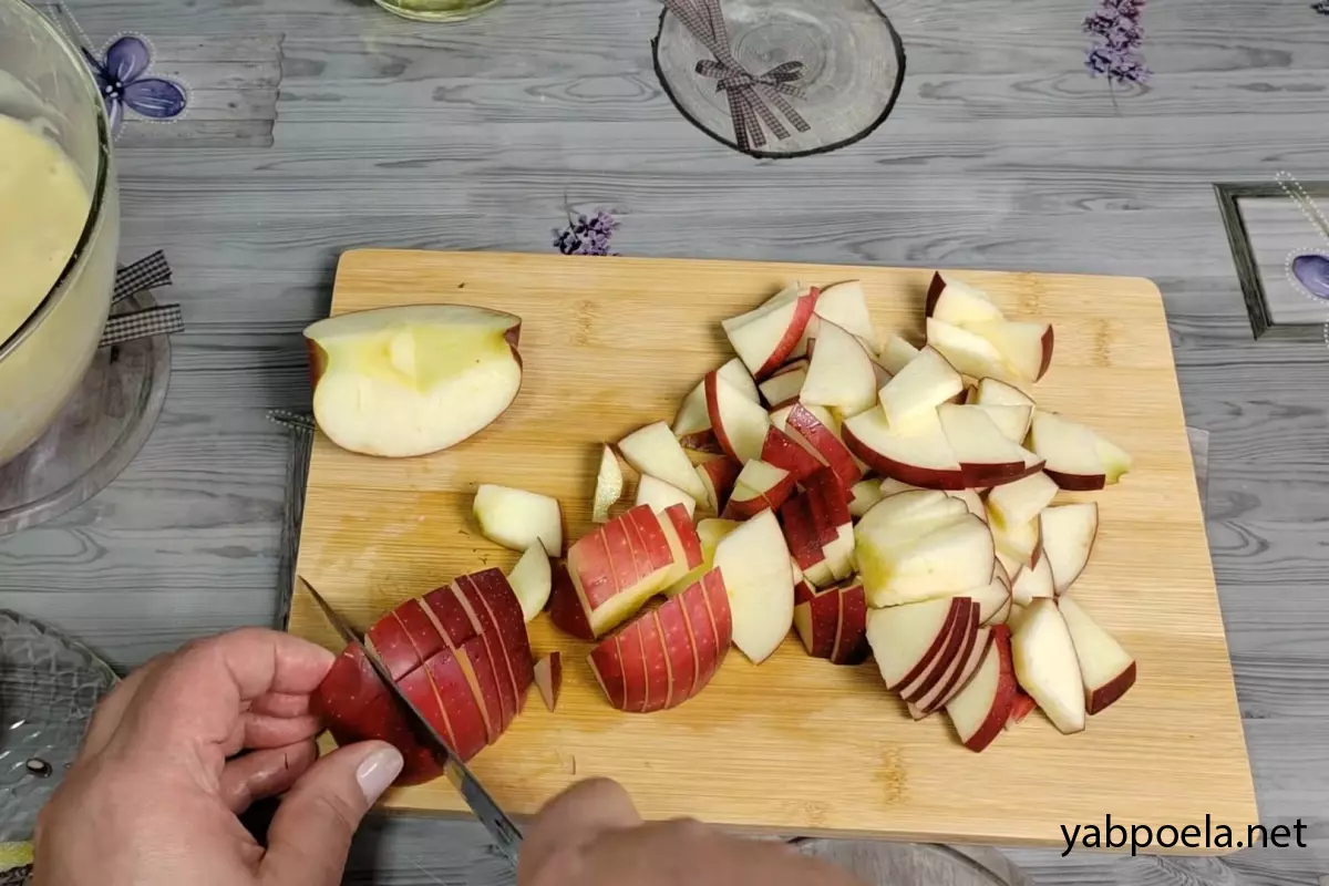 Яблука наріжте довільними шматочками (крупно або дрібно — як більше подобається). Шкірку можна не очищати.