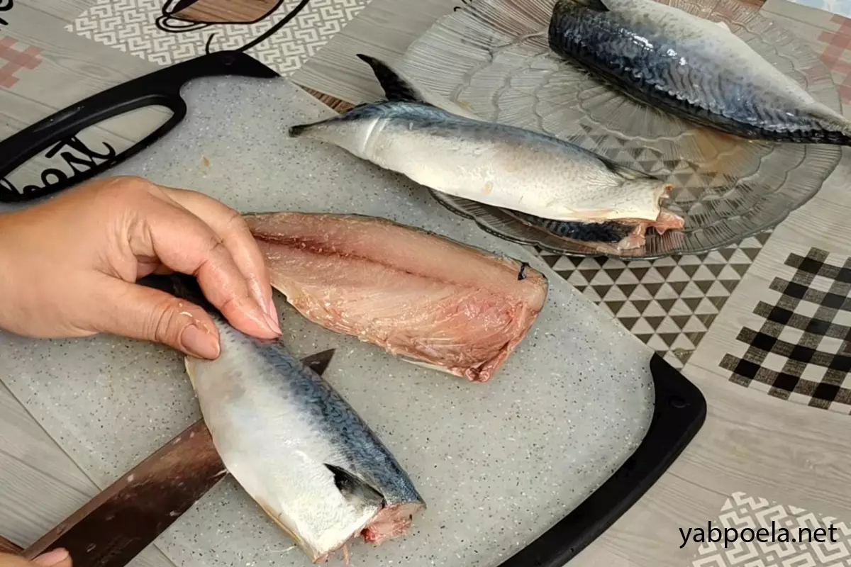 Скумбрію помийте, відріжте голову та видаліть нутрощі. Гострим ножем акуратно зріжте філе з хребта (ведіть ніж прямо по кістці). Обов’язково видаліть усі дрібні кісточки з філе.