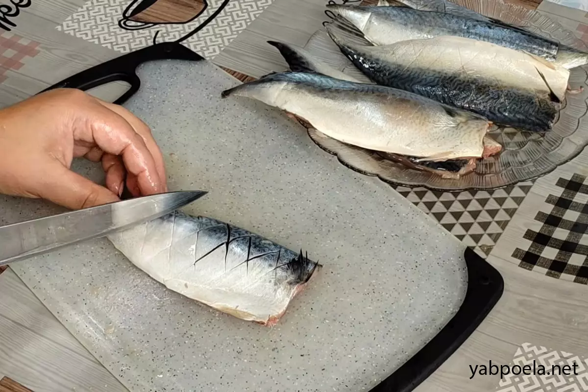 На кожному філе з боку шкірки зробіть неглибокі надрізи: спочатку по діагоналі в один бік, потім перехрещуючи їх в інший.