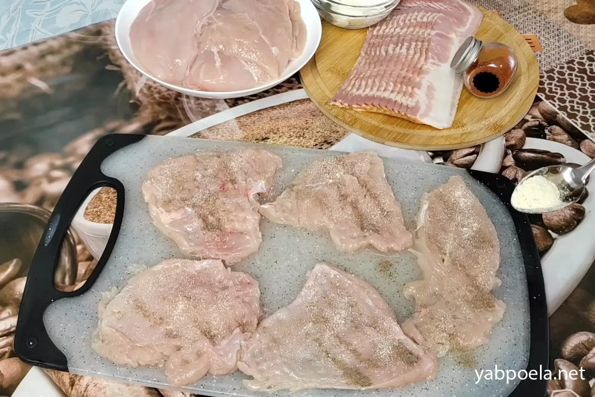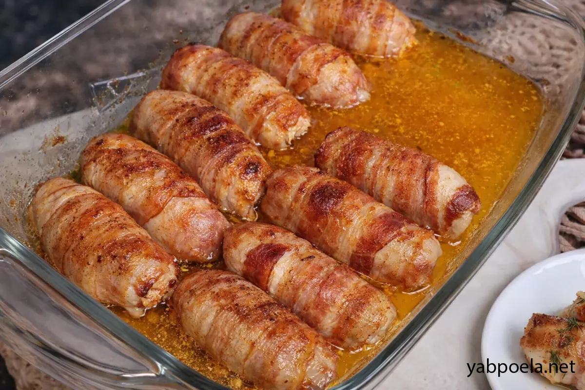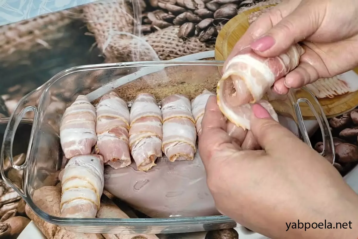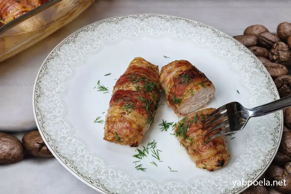 Соковиті рулетики з курячої грудки з сиром у беконі