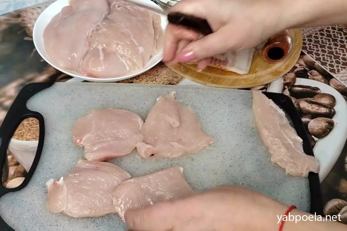 Важливо: Відбивайте ретельно, але не «вщент», щоб м’ясо зберегло свою структуру й не порвалося.