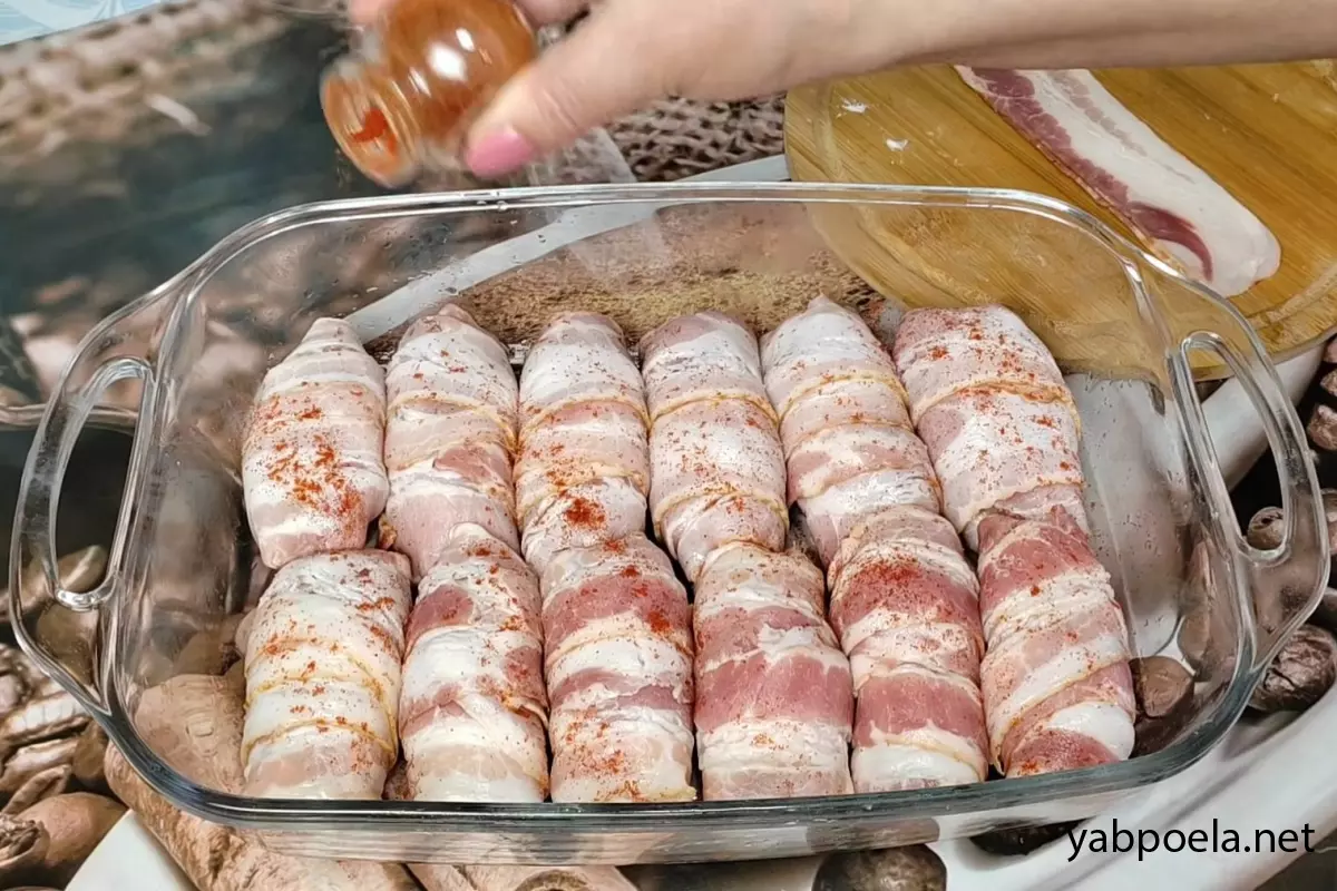 Секрет смаку: Будьте дуже обережні із сіллю! Сирокопчений бекон і вершковий сир уже достатньо солоні, тому м’ясо потрібно солити зовсім трохи.