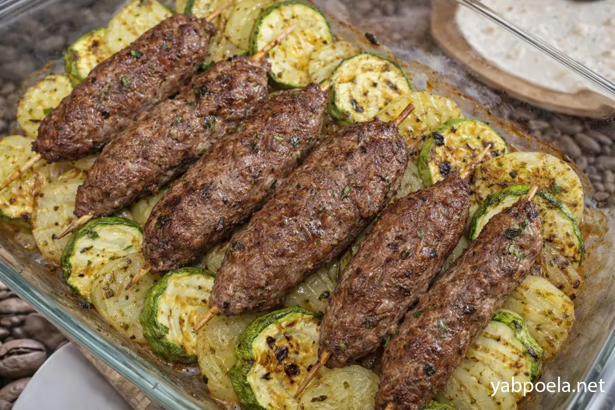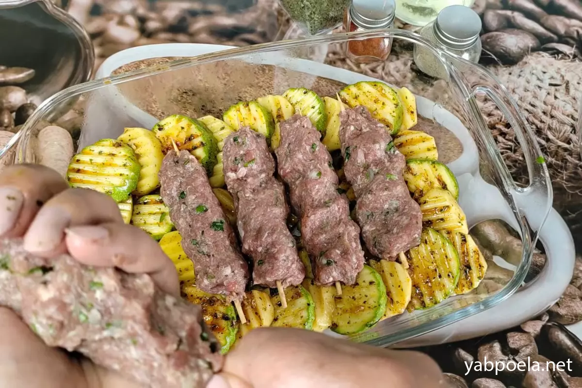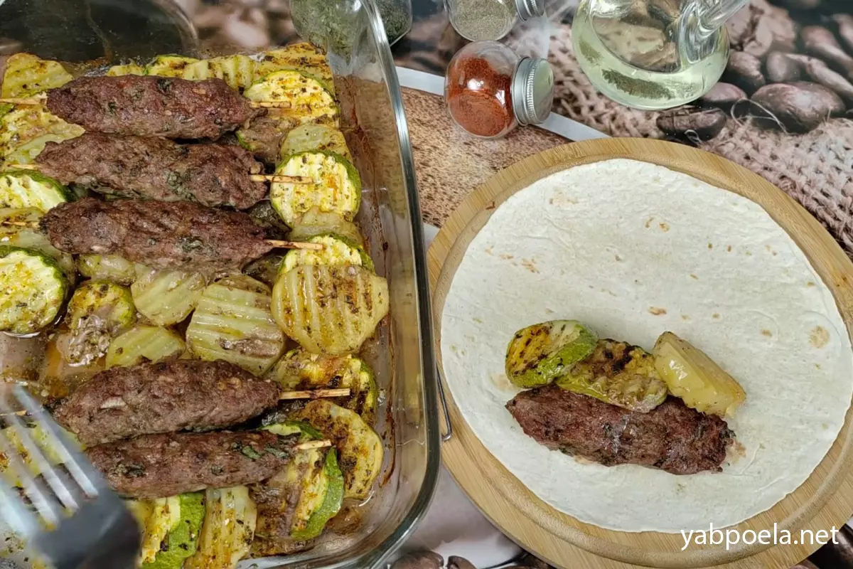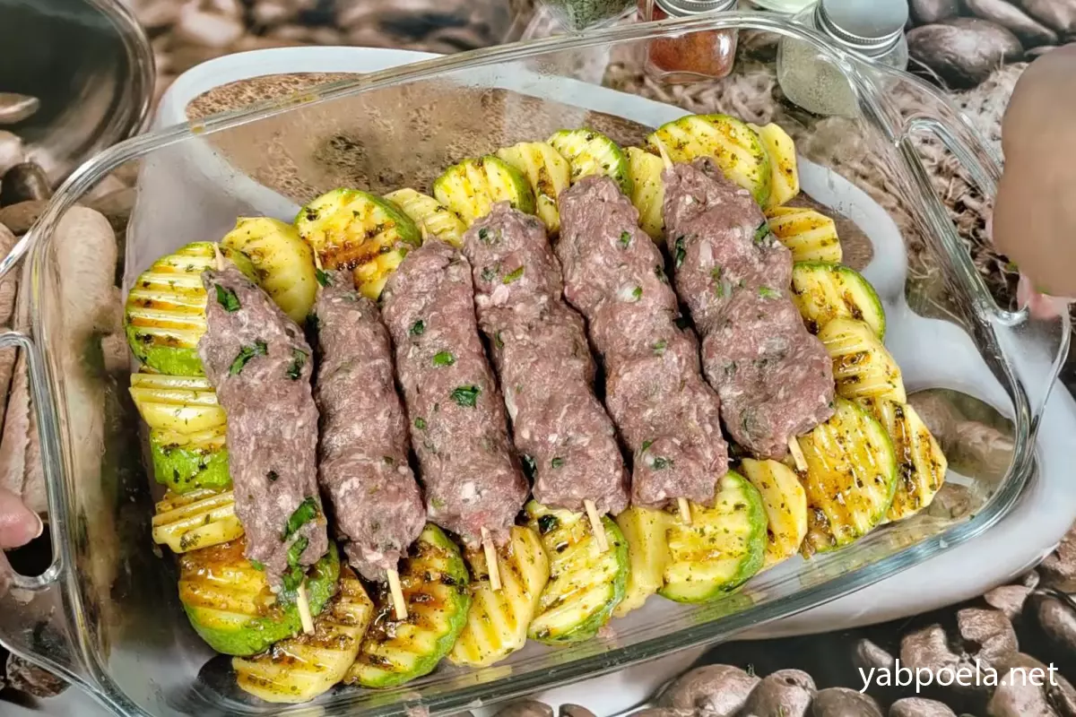 Соковитий люля-кебаб на шпажках з картоплею та кабачком у духовці