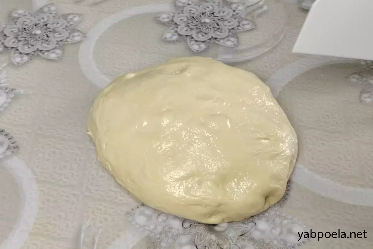Головне правило: Борошно під час розкачування не використовуємо! Просто злегка змастіть стіл і руки соняшниковою олією. Обімніть тісто.