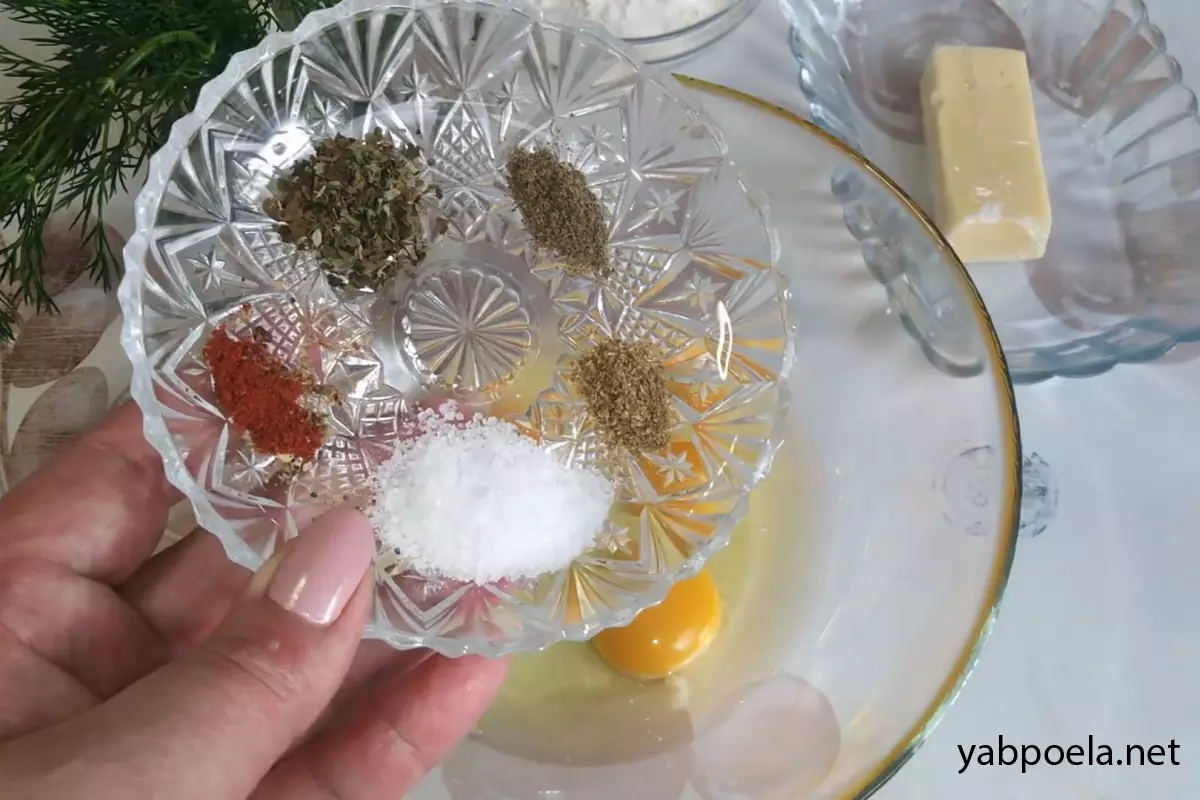 У глибоку миску розбийте 3 яйця. Додайте до них сіль та улюблені спеції: по щіпці коріандру, базиліку, чорного та гострого червоного перцю. Якщо ви віддаєте перевагу класиці, можна обмежитися лише сіллю та чорним перцем.