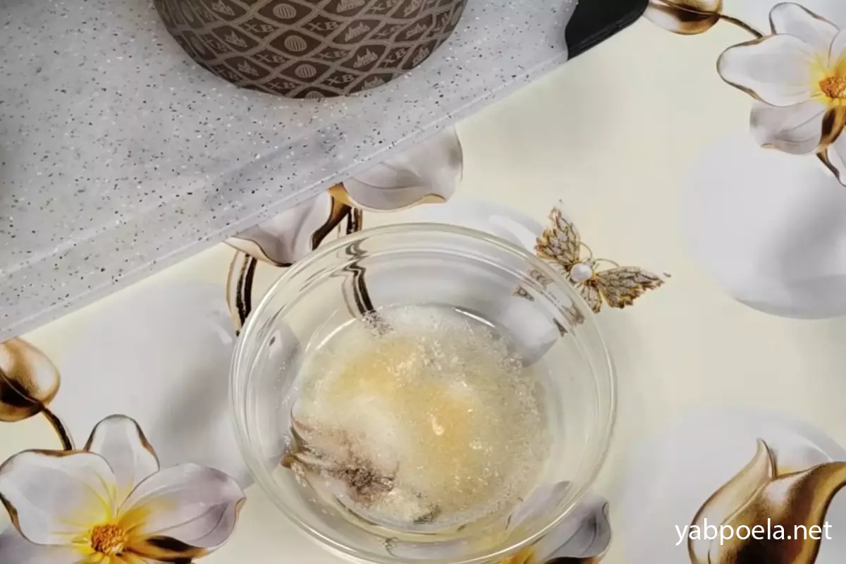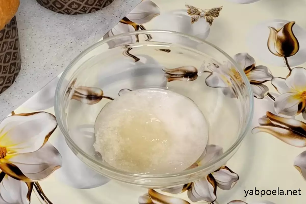 У невелику піалу насипте 1 ч. л. желатину (без гірки) і залийте 2 ст. л. звичайної холодної води. Перемішайте та відставте вбік, щоб желатин набух.